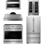 THOR Contemporary Package - 36" Gas Range, Range Hood, Refrigerator, Microwave and Wine Cooler, AP-ARG36LP-B119