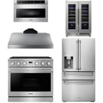 THOR Contemporary Package - 36" Gas Range, Range Hood, Refrigerator, Microwave and Wine Cooler, AP-ARG36LP-B121