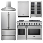 THOR Package - 48" Gas Range, Range Hood, Refrigerator, Dishwasher, Wine Cooler, AP-LRG4807U-W-3
