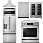 THOR Kitchen Package - 30" Electric Range, Hood, Microwave Drawer, Refrigerator with Water & Ice Dispenser, Dishwasher, Wine Cooler