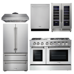THOR Kitchen Package - 48 inch Dual Fuel Range, Range Hood, Refrigerator, Dishwasher, Wine Cooler, AP-HRD4803ULP-4