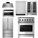 THOR Kitchen Package - 30" Gas Range, Range Hood, Microwave, Refrigerator, Dishwasher, Wine Cooler, AP-LRG3001U-C-6