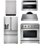 THOR Kitchen Package - 36" Electric Range, Range Hood, Microwave, Refrigerator with Water and Ice Dispenser, Dishwasher, AP-HRE3601-C-9