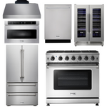 THOR Kitchen Package - 36" Gas Range, Range Hood, Microwave, Refrigerator, Dishwasher, Wine Cooler, AP-LRG3601U-C-6