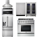 THOR Kitchen Package - 36" Gas Range, Range Hood, Microwave, Refrigerator with Water and Ice Dispenser, Dishwasher, Wine Cooler, AP-HRG3618U-W-10