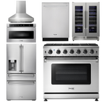 THOR Kitchen Package - 36 Inch Gas Range, Range Hood, Microwave, Refrigerator with Fridge and Ice Maker, Dishwasher, Wine Cooler, AP-LRG3601U-W-10