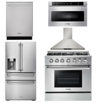 THOR Kitchen Package - 36" Gas Range, Range Hood, Microwave, Refrigerator with Water and Ice Dispenser, Dishwasher, AP-HRG3618U-13