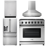 THOR Kitchen Package - 36 Inch Propane Gas Range, Range Hood, Refrigerator with Water and Ice Dispenser, Dishwasher, AP-LRG3601ULP-W-7
