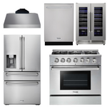 THOR Kitchen Package - 36" Propane Gas Range, Range Hood, Refrigerator with Water and Ice Dispenser, Dishwasher, Wine Cooler, AP-HRG3618ULP-C-8