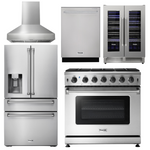 THOR Kitchen Package - 36 Inch Propane Gas Range, Range Hood, Refrigerator with Water and Ice Dispenser, Dishwasher, Wine Cooler, AP-LRG3601ULP-W-8