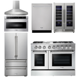 THOR Kitchen Package - 48" Dual Fuel Range, Range Hood, Refrigerator, Dishwasher, Microwave, Wine Cooler, AP-HRD4803ULP-W-6