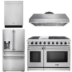 THOR Kitchen Package - 48" Gas Range, Range Hood, Dishwasher, Refrigerator with Water and Ice Dispenser, AP-LRG4807U-10