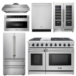 THOR Kitchen Package - 48" Gas Range, Range Hood, Refrigerator, Dishwasher, Wine Cooler, Microwave, AP-LRG4807U-8