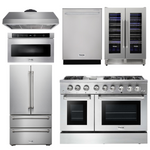THOR Kitchen Package - 48" Propane Dual Fuel Range, Range Hood, Refrigerator, Dishwasher, Microwave, Wine Cooler