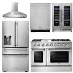 THOR Kitchen Package - 48" Gas Range, Range Hood, Refrigerator with Water and Ice Dispenser, Dishwasher, Wine Cooler, AP-HRG4808U-W-8