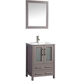 Vanity Art 48 in. Single Sink Vanity Cabinet with Ceramic Sink & Mirror - Grey, VA3024-48G