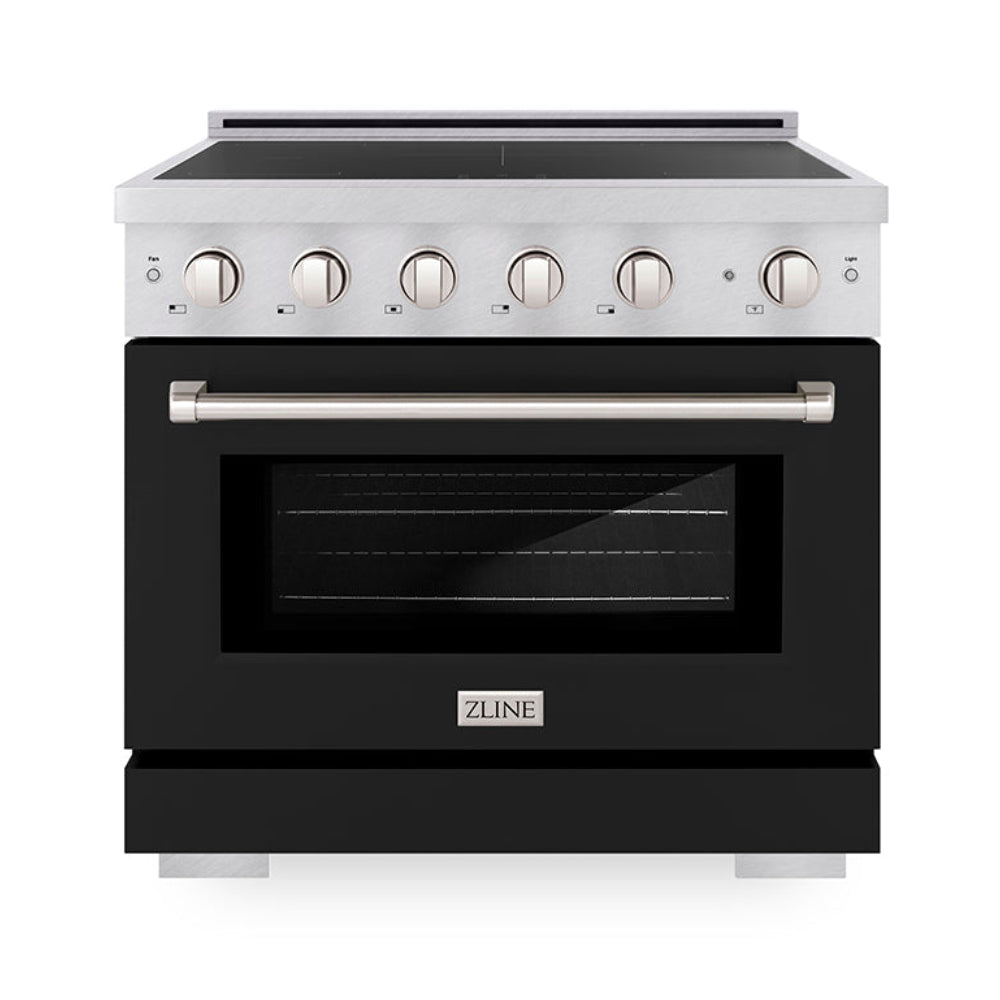 ZLINE 36" 5.2 cu. ft. Paramount Induction Range with 5 Element Cooktop and Electric Convection Oven in Satin Stainless Steel with Black Matte Door, SINRS-BLM-36