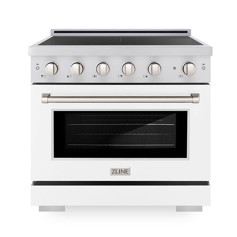 ZLINE 36" 5.2 cu. ft. Paramount Induction Range with 5 Element Cooktop and Electric Convection Oven in Stainless Steel with White Matte Door, SINR-WM-36