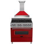 ZLINE Appliance Package - 36" Dual Fuel Range with Red Matte Door and Convertible Vent Range Hood in Satin Stainless Steel, 2KP-RASRMRH36