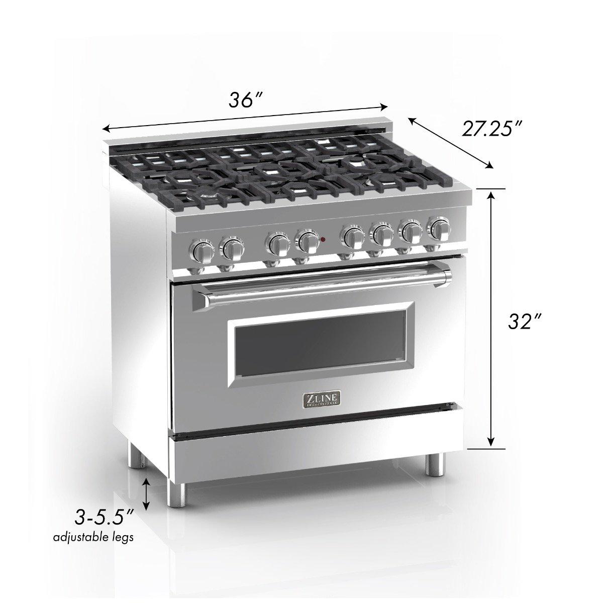 Luxury isn’t meant to be left desired—it’s meant to be attainable. The ZLINE 36 in. 4.6 cu. ft. Legacy Dual Fuel Range with 6 Burner Gas Cooktop and Electric Convection Oven in Satin Stainless Steel and Red Gloss Door (RAS-RG-36) pairs a powerful gas cooktop with 6 Italian-crafted burners, an electric convection oven, and a beautiful red gloss door with a Landscape oven door window design. With innovative features designed to enhance your kitchen’s capability, ZLINE Legacy Dual Fuel Ranges provide a professional culinary experience by pairing unmatched performance with timeless style.