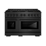 ZLINE 48" 6.7 cu. ft. Paramount Double Oven Dual Fuel Range with 8 Burner Gas Cooktop in Black Satin Stainless Steel, SDRBS-48
