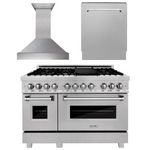 ZLINE 48 in. Kitchen Appliance Package with Satin Stainless Dual Fuel Range, Ducted Vent Range Hood and Tall Tub Dishwasher, 3KP-RASRH48-DWV