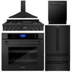 ZLINE Appliance Package - 48" Rangetop, Range Hood, Refrigerator, Dishwasher, Wall Oven in Black Stainless Steel