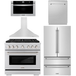 ZLINE Appliance Package - 36" Dual Fuel Range, Range Hood, 36" Refrigerator with Ice Maker, 24" Microwave Drawer and Dishwasher in Stainless Steel
