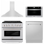 ZLINE Appliance Package - 36 in. Gas Range, Range Hood, Microwave Drawer, 3 Rack Dishwasher, 4KP-SGRRH36-MWDWV