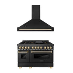 ZLINE Autograph Package - 48 In. Dual Fuel Range, Range Hood in Black Stainless Steel with Gold Accents, 2AKP-RABRH48-G