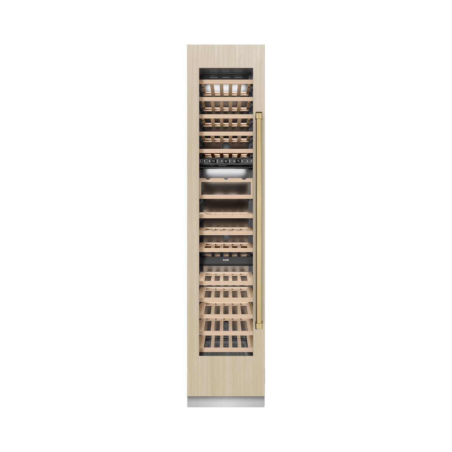 Luxury isn't meant to be desired - it's meant to be attainable. The ZLINE Autograph Edition 18 in. 9.0 cu. ft. Triple Zone 68 Bottle Panel Ready Left Hinge Column Wine Cooler with Champagne Bronze Accents (RBCWVLZ-18-CB) combines the convenience of a sleek integrated tall column built-in design with triple zone temperature control and spacious storage capacity for up to 68 wine bottles. Achieve ZLINE Attainable Luxury excellence with innovative features that showcase your collection in unparalleled style and ensure that every pour is perfection.