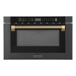 ZLINE Autograph 24" 1.2 cu. ft. Built-in Microwave Drawer in Black Stainless Steel and Champagne Bronze Helix Handle, MWDZ-1-BS-H-KCB