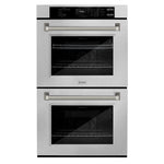 ZLINE Autograph 30" Professional True Convection Double Wall Oven with Air Fry and Self Clean in Satin Stainless Steel with Polished Nickel Helix Handles, WADSZ-30-KPN