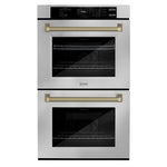 ZLINE Autograph 30" Professional True Convection Double Wall Oven with Air Fry and Self Clean in Stainless Steel with Champagne Bronze Helix Handles, WADZ-30-KCB