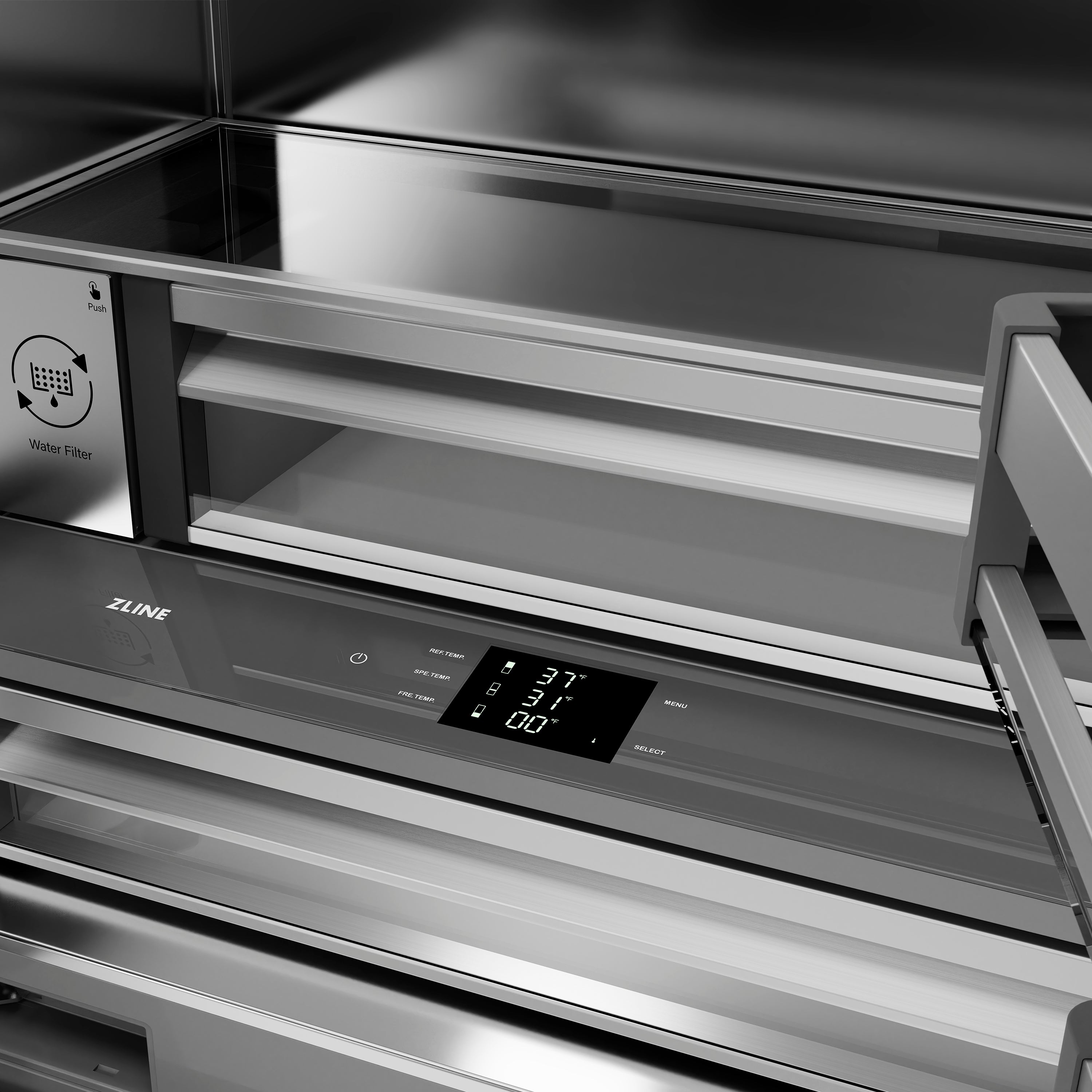 Luxury isn’t meant to be left desired—it’s meant to be attainable. The ZLINE Autograph Edition 36 in. 19.6 cu. ft. French Door Built-In Bottom Freezer Refrigerator with Water Dispenser and Ice Maker in Stainless Steel with Stainless Steel Interior and Champagne Bronze Helix Handles (SRBIVZ-30436KCB) delivers the ultimate combination of modern design and practical storage capacity by pairing innovative full-ceiling interior LED lighting with premium dual cooling technology to shine the perfect spotlight on groceries and other items. Achieve ZLINE Attainable Luxury® excellence with innovative features designed to enhance your kitchen’s cooling and freezing capability.