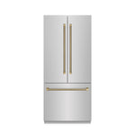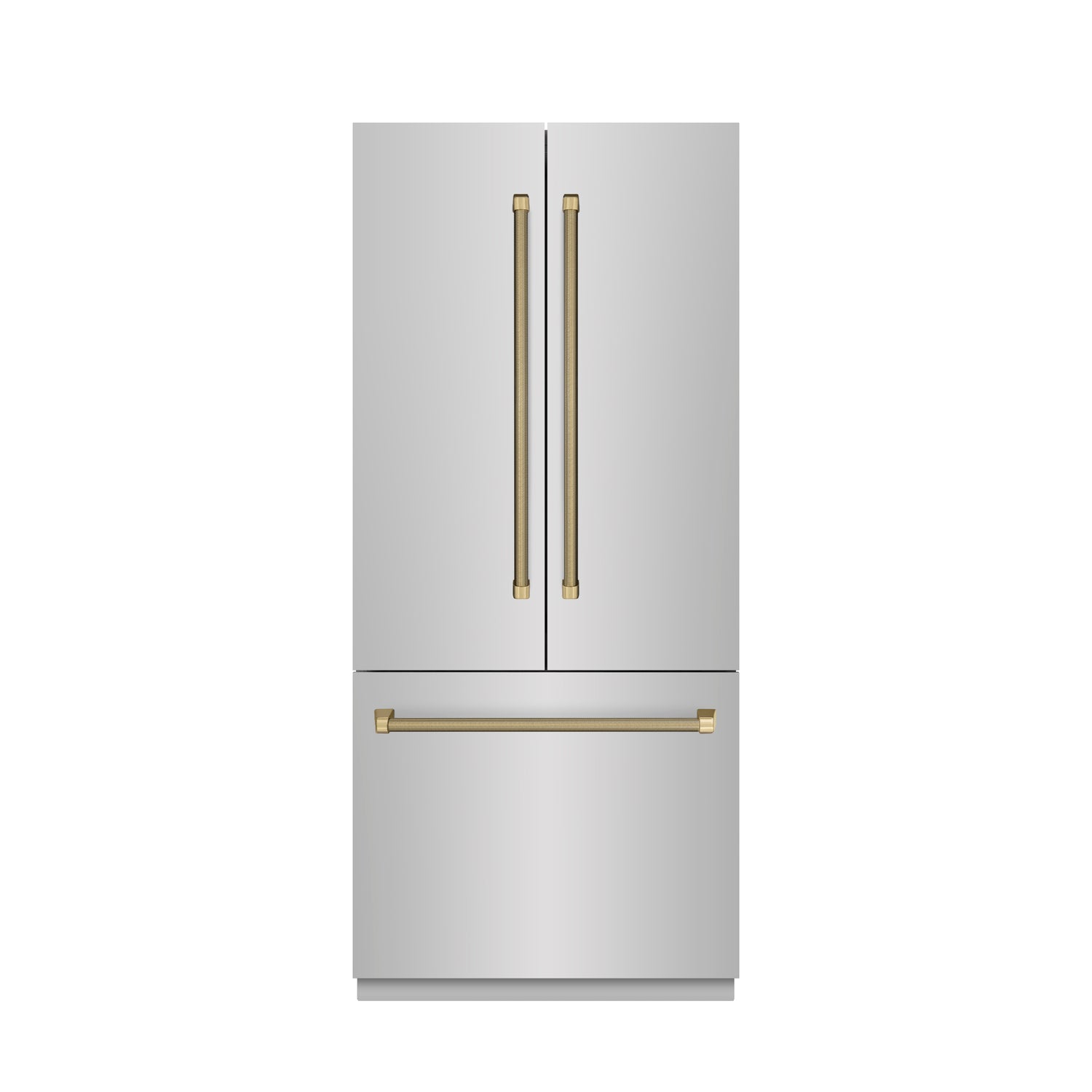ZLINE Autograph 36" 19.6 cu. ft. French Door Built-In Bottom Freezer Refrigerator with Water Dispenser and Ice Maker in Stainless Steel with Stainless Steel Interior and Champagne Bronze Helix Handles, SRBIVZ-30436KCB