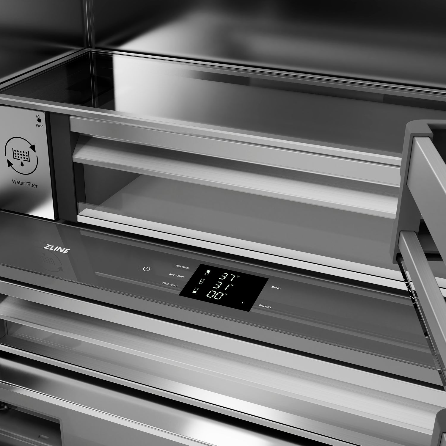 Luxury isn’t meant to be left desired—it’s meant to be attainable. The ZLINE Autograph Edition 36 in. 19.6 cu. ft. French Door Built-In Bottom Freezer Refrigerator with Water Dispenser and Ice Maker in Stainless Steel with Stainless Steel Interior and Polished Nickel Helix Handles (SRBIVZ-30436KPN) delivers the ultimate combination of modern design and practical storage capacity by pairing innovative full-ceiling interior LED lighting with premium dual cooling technology to shine the perfect spotlight on groceries and other items. Achieve ZLINE Attainable Luxury® excellence with innovative features designed to enhance your kitchen’s cooling and freezing capability.