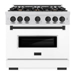 ZLINE Autograph 36" 5.2 cu. ft. Classic Gas Range with 6 Burner Cooktop and Convection Gas Oven in Satin Stainless Steel with White Matte Door and Matte Black Accents, CGRSZ-WM-36-MB