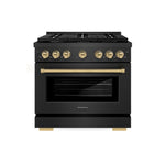 ZLINE Autograph 36" 5.2 cu. ft. Paramount Gas Range with 6 Burner Cooktop in Black Satin and Champagne Accents, SGRBSZ-36-CB