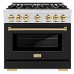 ZLINE Autograph 36" 5.2 cu. ft. Select Dual Fuel Range with 6 Burner Gas Cooktop and Electric Convection Oven in Satin Stainless Steel with Black Matte Door and Polished Gold Accents, HDRSZ-BLM-36-G