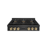 ZLINE Autograph 36" Paramount Gas Rangetop with 6 Burner DuoPro™ Cooktop in Black Satin and Polished Gold Accents, PSRTBSZ-36-G