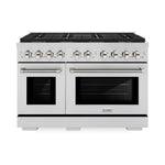 ZLINE Autograph 48" 6.7 cu. ft. Paramount Gas Range with 8 Burner DuoPro™ Cooktop and Dual Ovens in Stainless Steel with Polished Nickel Helix Handles and Accents, PSGRZ-48-KPN
