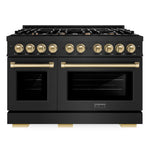 ZLINE Autograph 48" 6.7 cu. ft. Select Double Oven Dual Fuel Range with 8 Burners in Black Stainless Steel and Champagne Bronze Accents, HDRBZ-48-CB