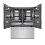 Luxury isn't meant to be desired - it's meant to be attainable. The ZLINE Autograph Edition 60" 32.2 cu. ft. French Door Built-In Bottom Freezer Refrigerator with Water Dispenser and Ice Maker in Stainless Steel with Graphite Gray Interior and Polished Gold Accents (GRBIVZ-304-60G) provides the ultimate upgrade to the center of your home by pairing premium dual cooling technology with enhanced storage capacity for multiple grocery items. Achieve ZLINE Attainable Luxury excellence with innovative features designed to enhance your kitchen's cooling and freezing capability.