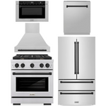 ZLINE Autograph Appliance Package - 30" Gas Range, Range Hood, 36" Refrigerator with Ice Maker, 24" Microwave Drawer and Dishwasher in Stainless Steel with Matte Black Accents