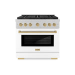 ZLINE Autograph Edition 36" 5.2 cu. ft. Paramount Dual Fuel Range with 6 Burner DuoPro™ Cooktop and Electric Convection Oven in Satin Stainless Steel with White Matte Door and Champagne Bronze Accents, PSDRSZ-WM-36-CB