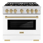 ZLINE Autograph 36" 5.2 cu. ft. Select Dual Fuel Range with 6 Burner Gas Cooktop and Electric Convection Oven in Satin Stainless Steel with White Matte Door and Champagne Bronze Accents, HDRSZ-WM-36-CB