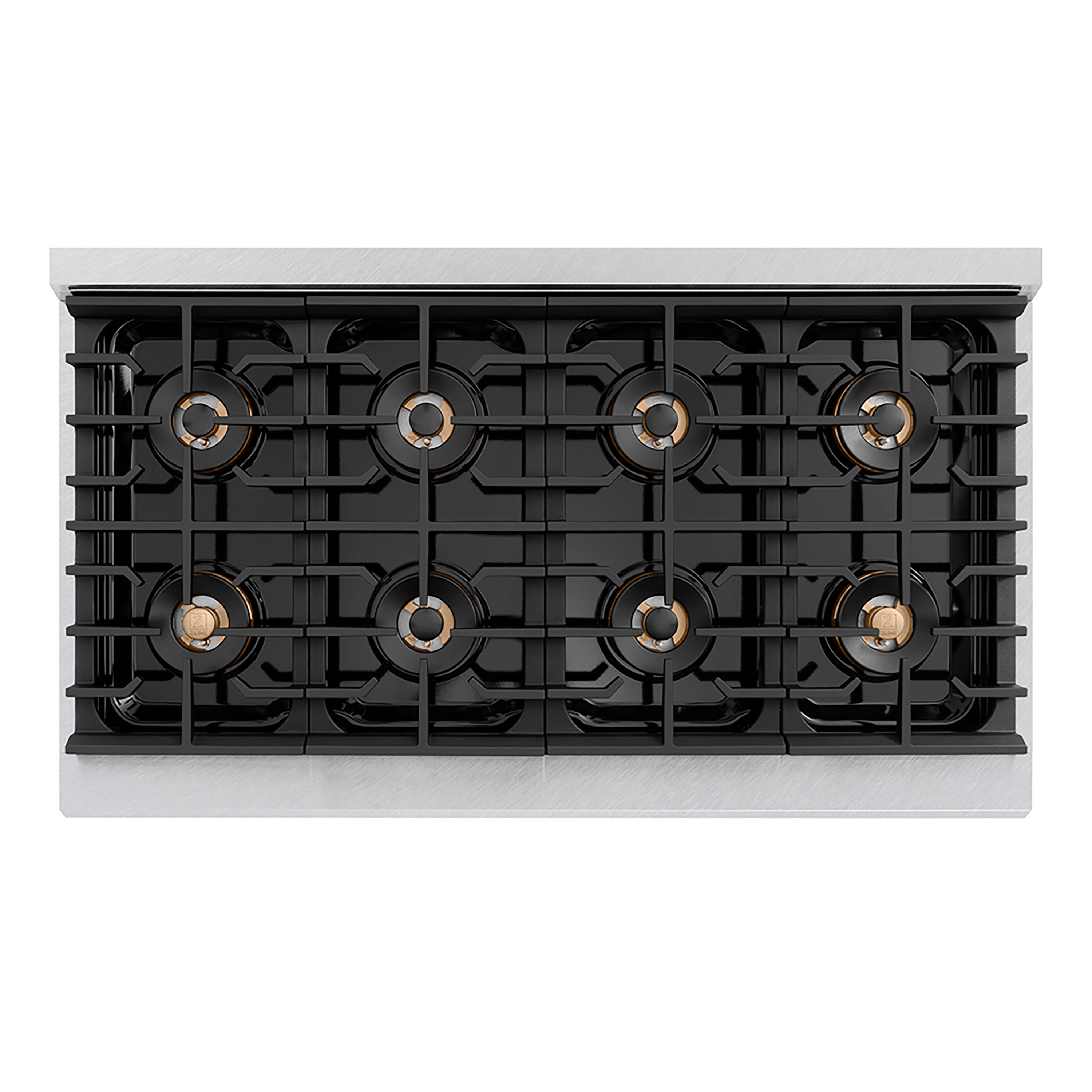 • Cooktop Features: (8) Brass Burner with Porcelain Cook Top with electronic spark ignition for all burners