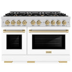 ZLINE Autograph 48" 6.7 cu. ft. Select Double Oven Gas Range with 8 Burners in Stainless Steel with White Matte Doors and Champagne Bronze Accents, HGRZ-WM-48-CB