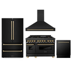 ZLINE Autograph Package - 48" Dual Fuel Range, Range Hood, Refrigerator, Dishwasher in Black Stainless, Bronze Accents